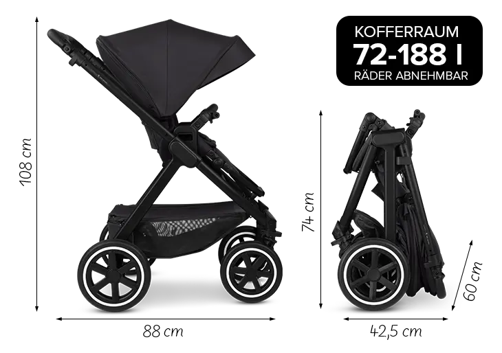 In a matter of seconds, you can fold the Samba 2 with the seat to a compact size - no matter which way the seat is facing. A real plus for modern parents who value flexibility and functionality.