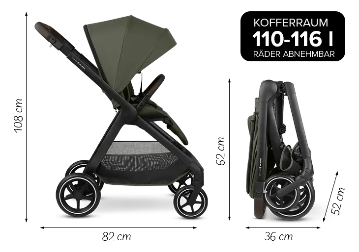 Thanks to its compact folding size, it fits almost anywhere – and can be taken out again just as quickly. Simply fold it up, get in, and go! Its dimensions are not only impressive when folded. Its compact design and easy maneuverability are also a real advantage when out and about in the city. You can steer it effortlessly through busy shopping streets or crowded train platforms and even find a spot in a packed subway. This lightweight, agile stroller is the perfect companion for urban families who value mobility, easy handling, comfort, and style.