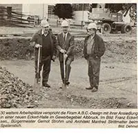 ABC Design was founded by Dietmar Fischer and his wife Evi in Waldshut, Baden-Württemberg. The fledgling family business started by introducing the Italian pushchair brand Monbebe to the German market. The launch was supported by a specialist retail catalogue of the same name and the company's first appearance at the Kind + Jugend trade fair with its own exhibition stand.