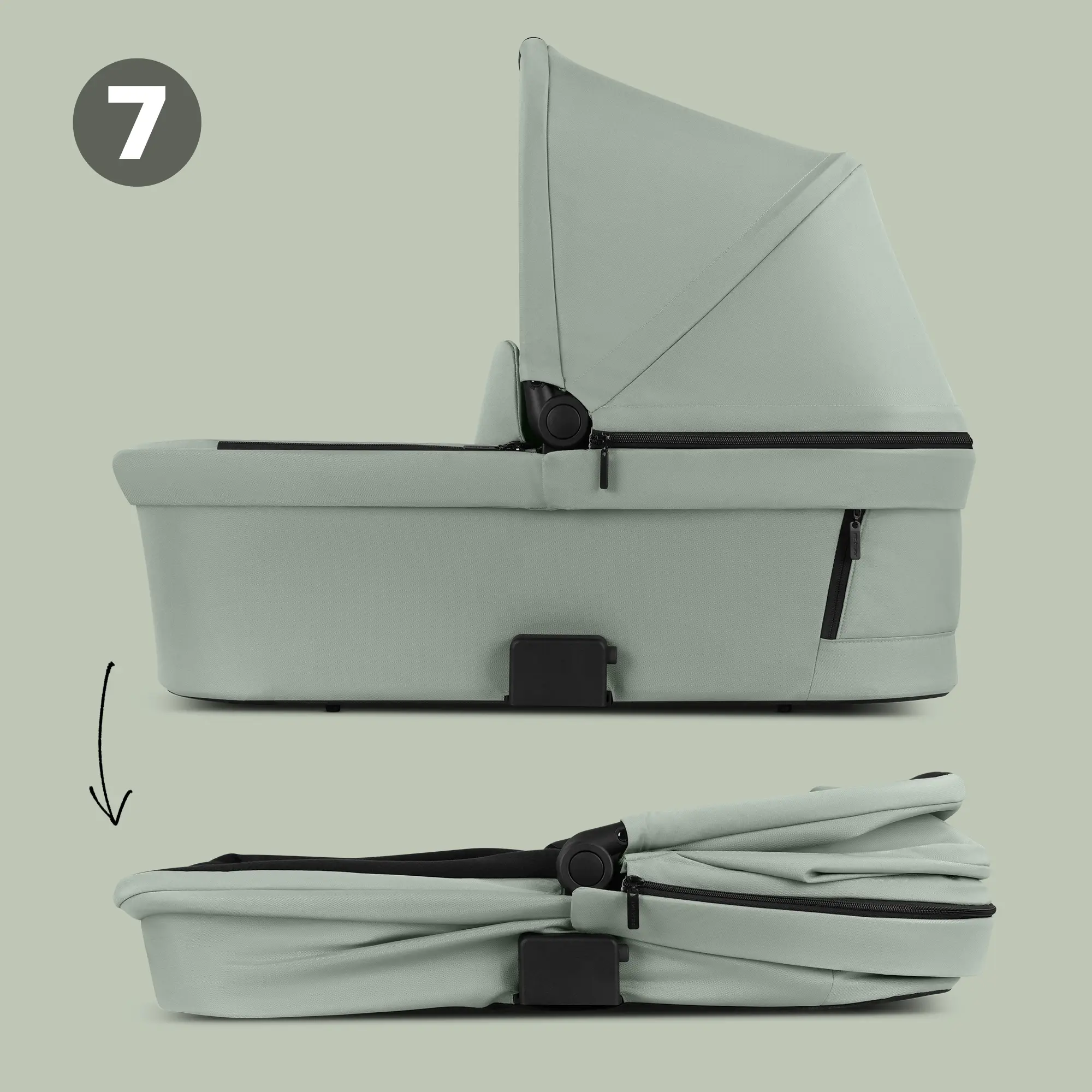 - Carrycot with new folding system on the underside