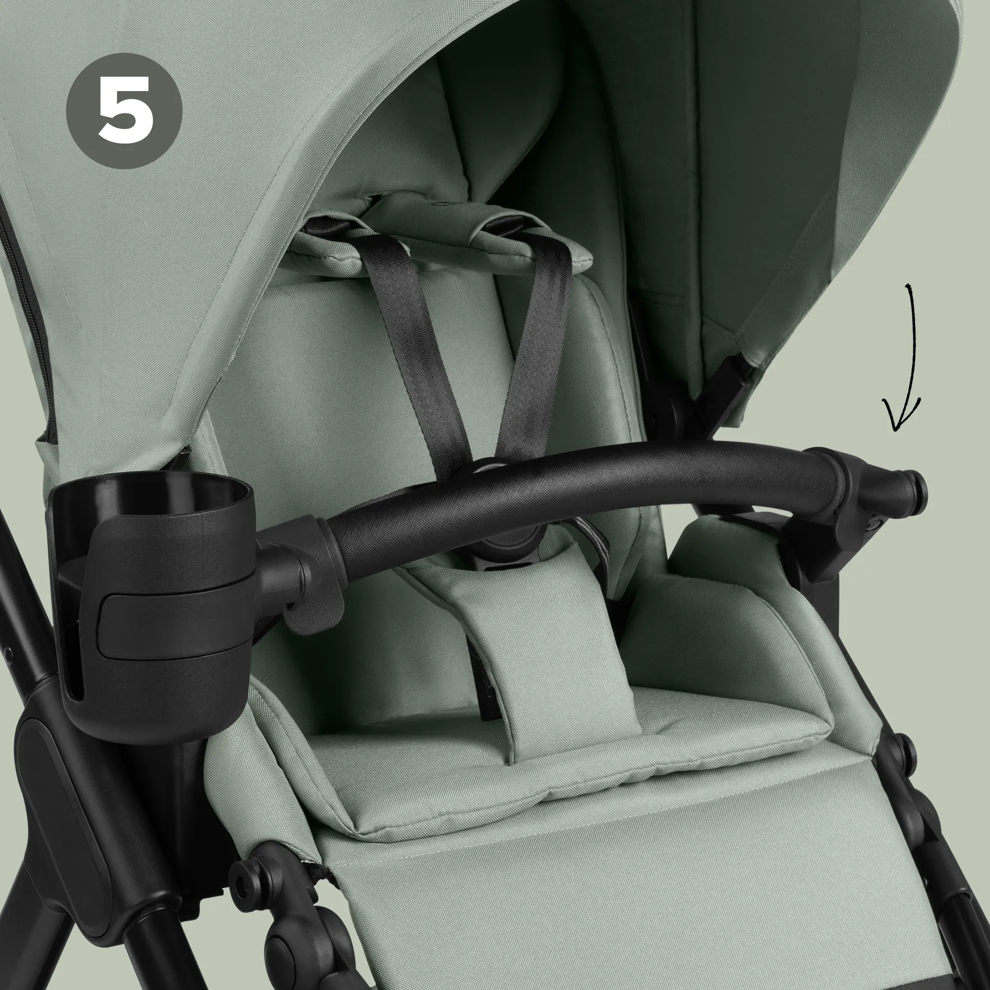 When you are holding your baby in your arms, you can now easily fold back the canopy of the carrycot with your other hand. To do this, briefly press the button on each side to unlock the canopy adjustment mechanism. With the previous model, you had to press the release buttons simultaneously, which is not possible with one hand. You will love this added convenience in everyday use.