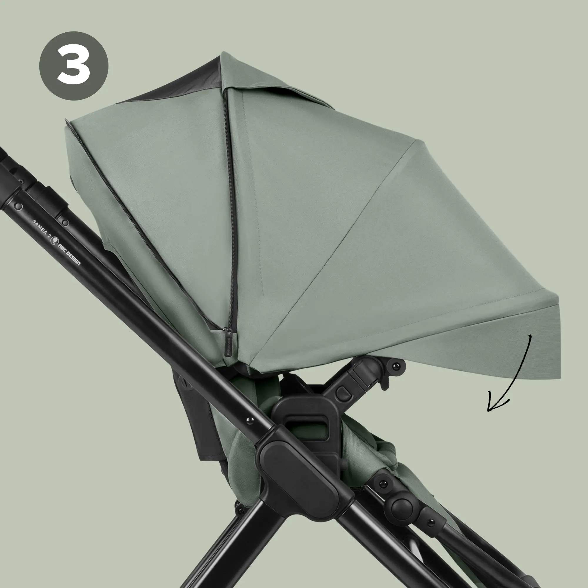 With the Samba 2, you benefit from an extended sun canopy on the sports seat. Not only can you fold out the canopy, but you also have an additional sun visor at the very front. You can fold this in or out as required. This offers considerable added value for you and your child, especially in extreme light conditions, such as when the sun is low in the evening.