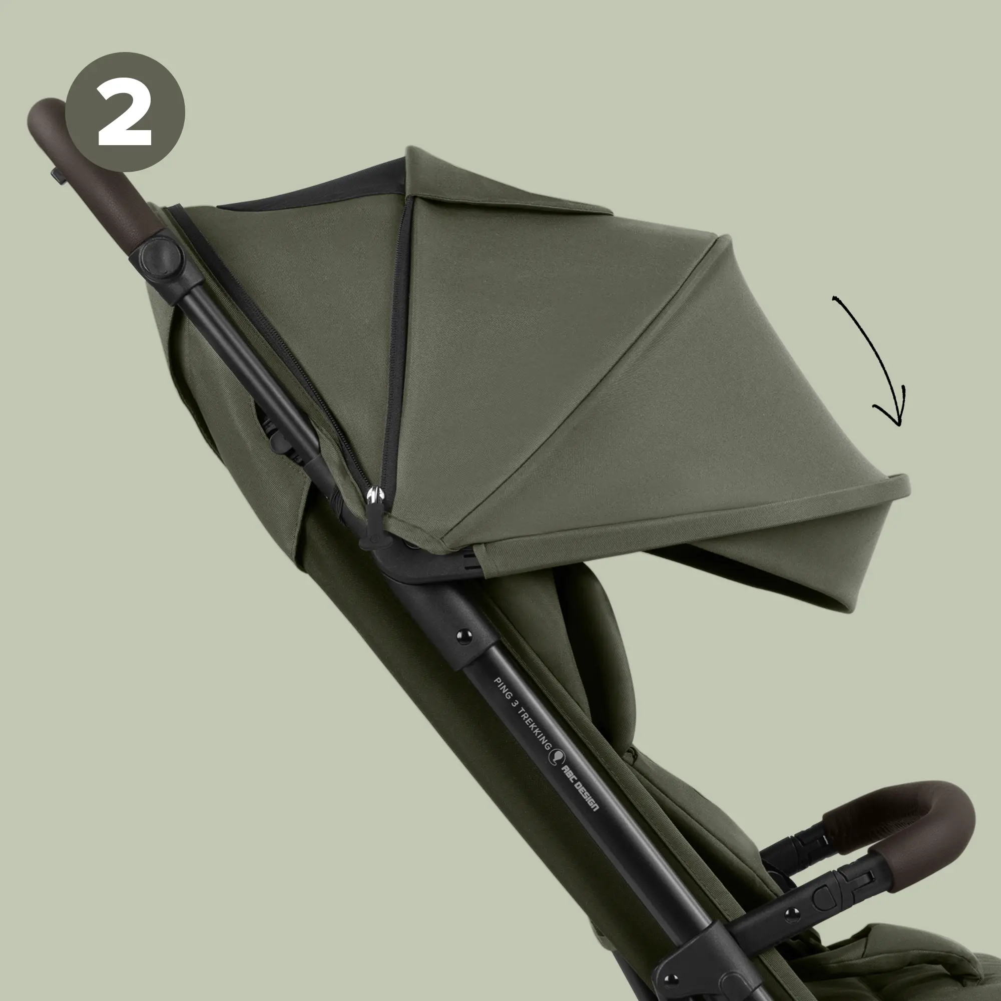 With the Ping 3 Trekking, you benefit from an extended sun canopy. Not only can you fold out the canopy, but you also have an additional sun visor at the front. You can fold this in and out as needed. Especially in extreme light conditions, such as low evening sun, this offers considerable added value for you and your child.