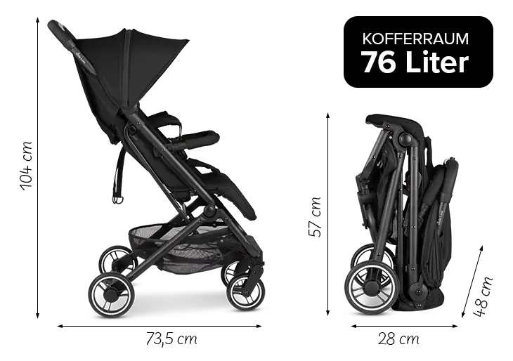 You can easily steer, fold and unfold the buggy with just one hand. Thanks to its extra compact folding size, you can easily stow it away or take it with you on trips - even on the plane.